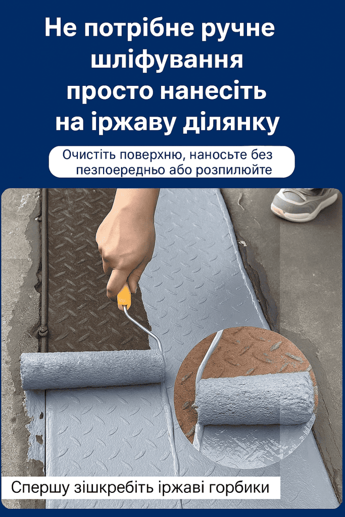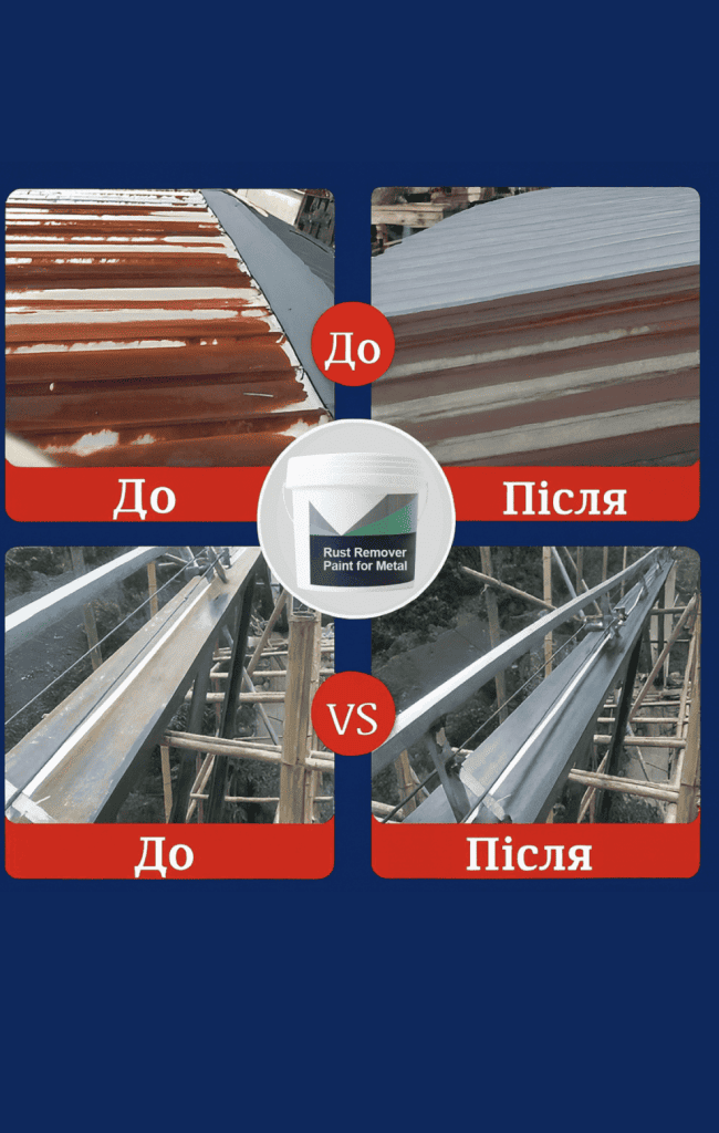 Rust Remover Paint for Metal – ідеальне рішення для ремонту та захисту від іржі за 1 крок! Підходить для старих або пошкоджених корозією металевих поверхонь та зупиняє окислення, надаючи вашим виробам свіжого вигляду. Позбавте себе клопоту із засобами для видалення іржі – ця фарба пропонує як захист, так і оновлення.