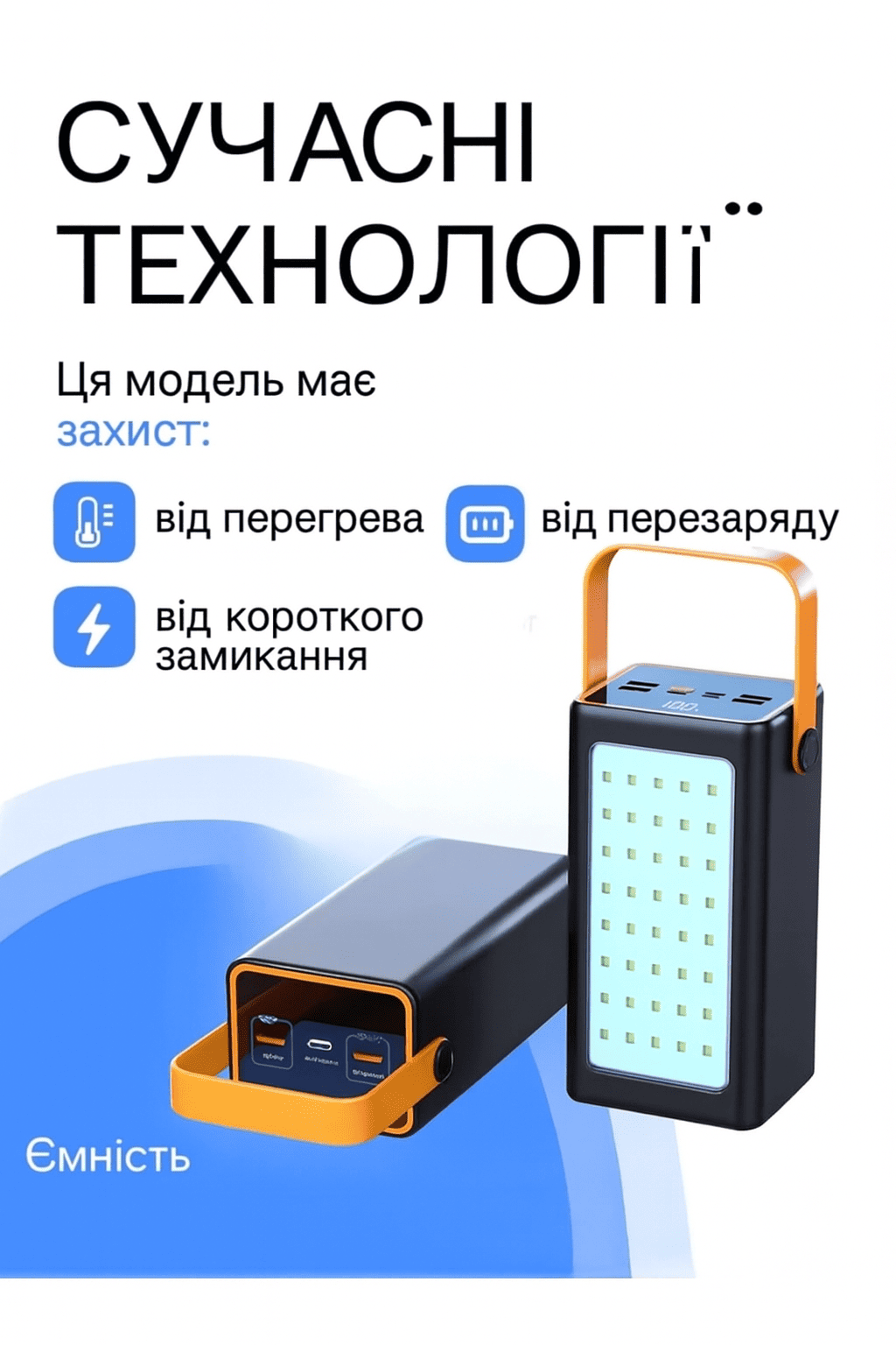 - 100000 mAh 🔋 Велика ємність