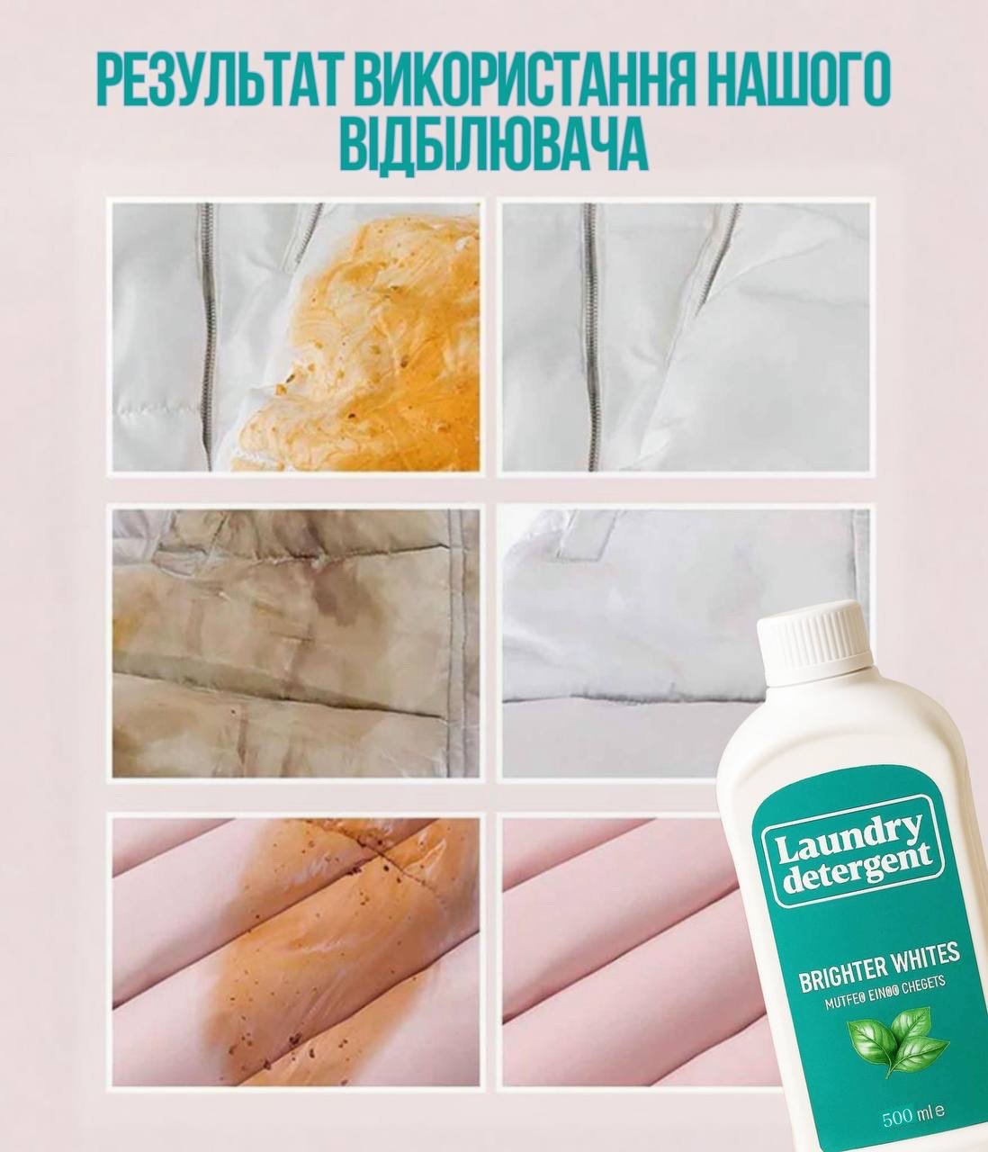 НАШЕ РІШЕННЯ: Цей японський засіб для прання створений, аби дарувати старим речам друге життя. Його активна формула не просто очищує навіть найскладніші забруднення, а й відновлює яскравість кольору тканини. Він дбайливо діє на волокна, не пошкоджуючи їх, і підходить навіть для ніжних матеріалів.